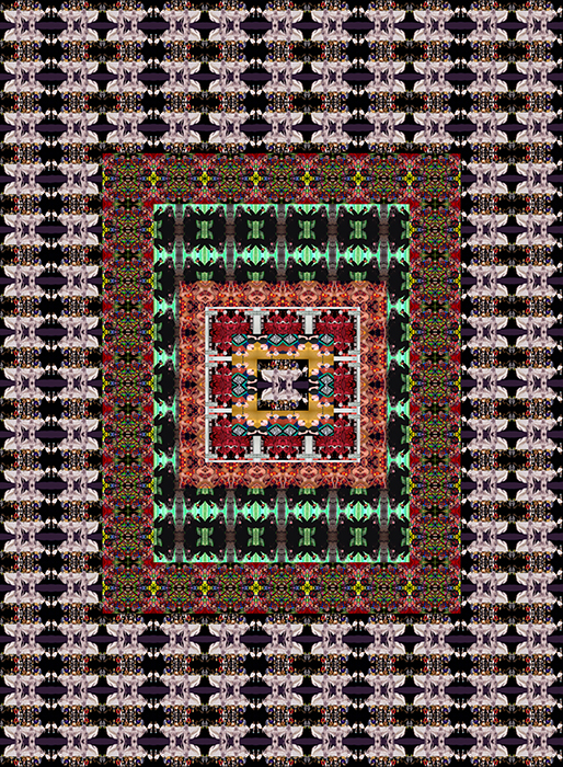 Several photos combined together, manipulated to form a kaleidoscopic effect.