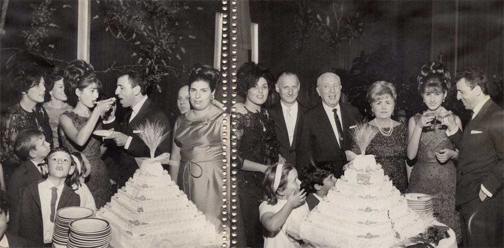 I review the photo album of my first wedding: pages are scanned and translated to digital format to be assembled in groups of two to create a single picture.