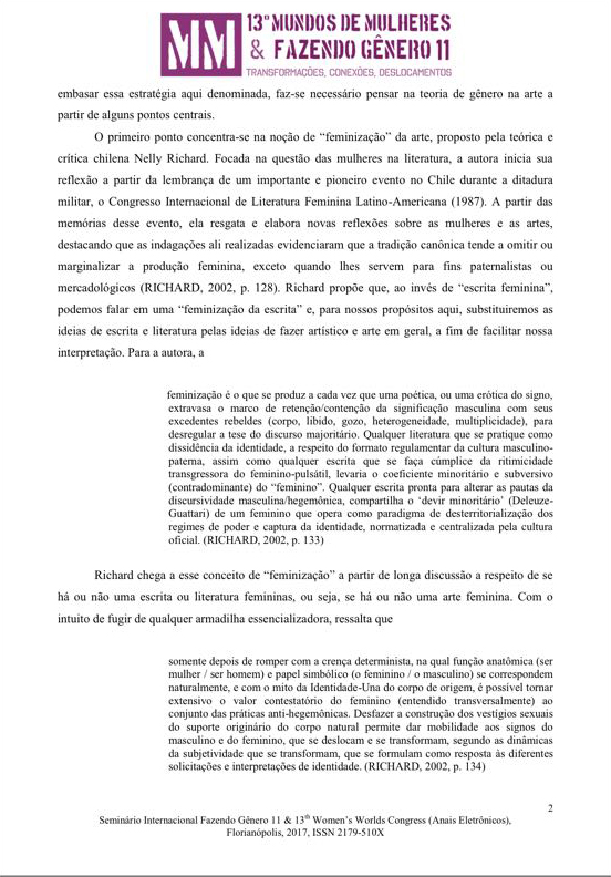 SEMINARIO INTERNACIONAL FAZENDO GENERO 11 & 13th WOMEN'S WORLD CONGRESS Florianopolis, Brazil