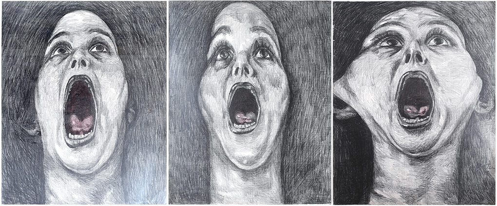 Graphite and acrylic on paper 150 x 40 cm (50 x 40 cm each) |